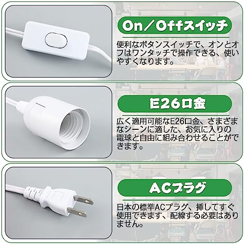 Szbritelight (2個セット) 電球ソケット E26 コード付き ソケット コンセント スイッチ付 1.8m ホワイト 工事不要 おしゃれ